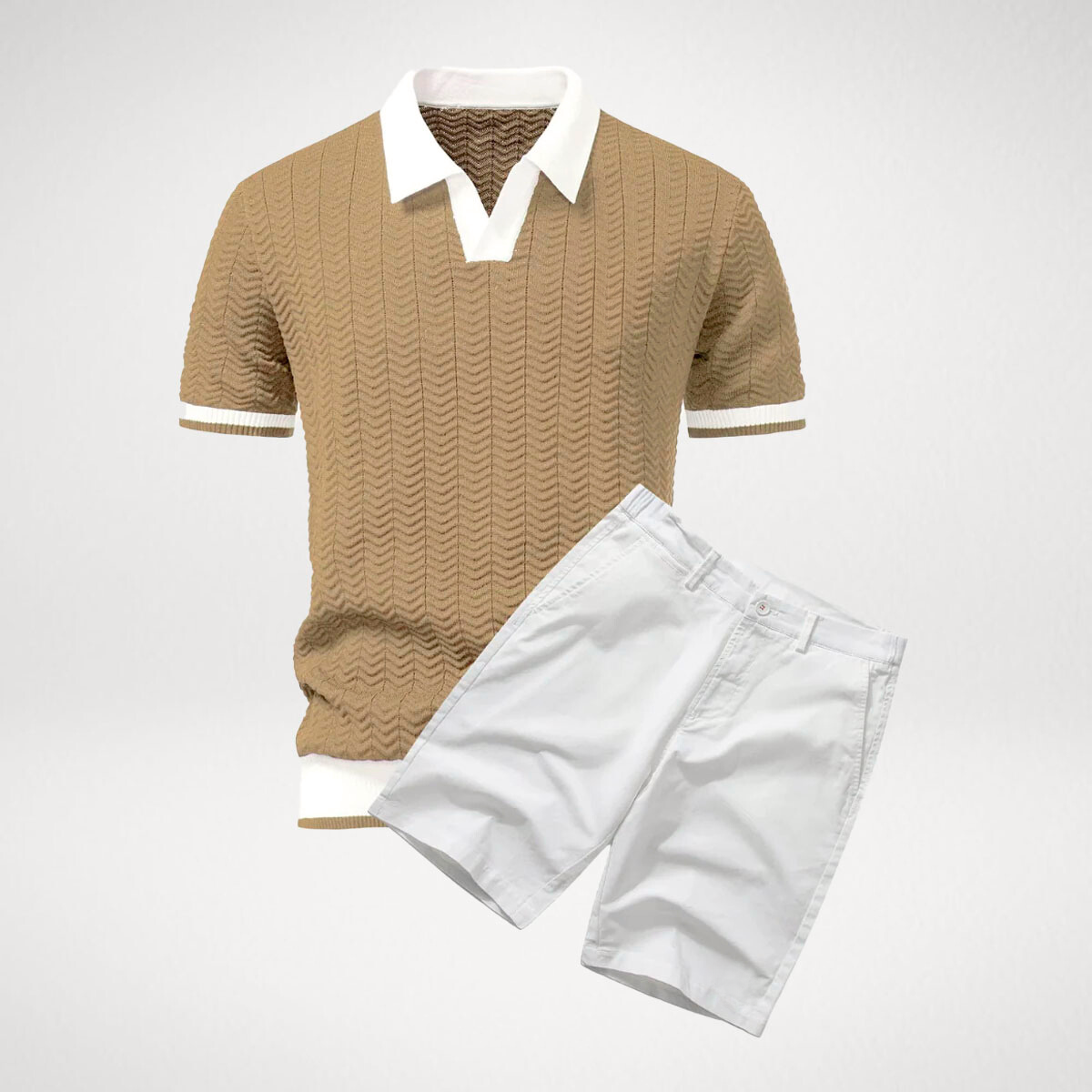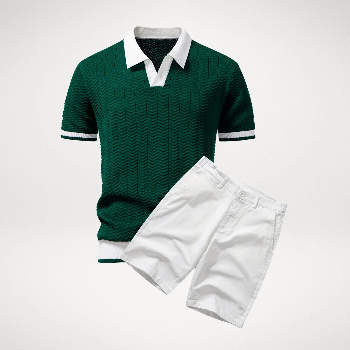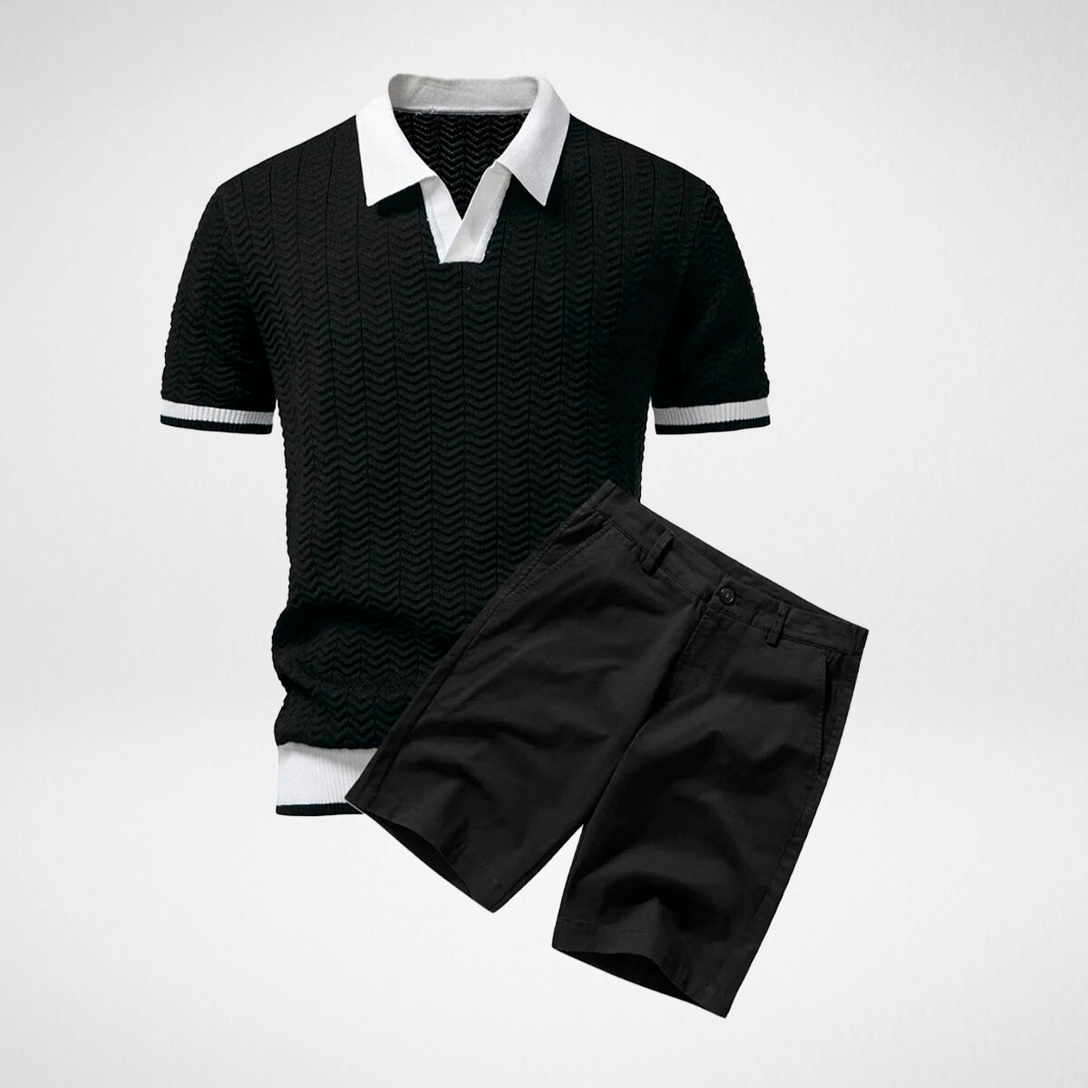 Verleihen Sie Ihrem Alltag neuen Stil mit dem Classic Contrast Set – wo elegantes Design auf lässigen Komfort trifft. Dieses sorgfältig zusammengestellte Set umfasst ein elegantes Poloshirt mit markanten Kontrastdetails und eine perfekt abgestimmte Shorts mit Kordelzug, die den Look mit dezentem Stil abrundet.