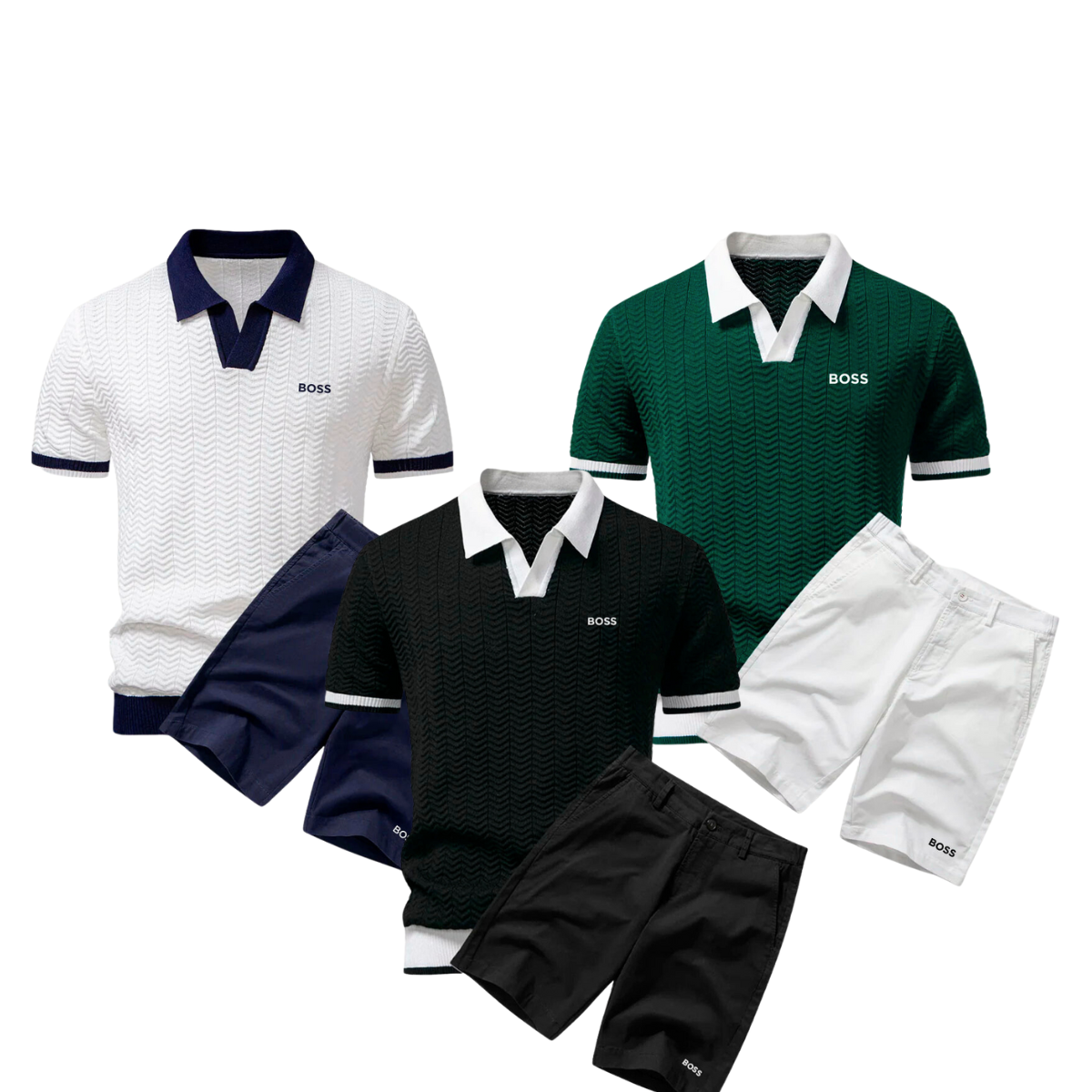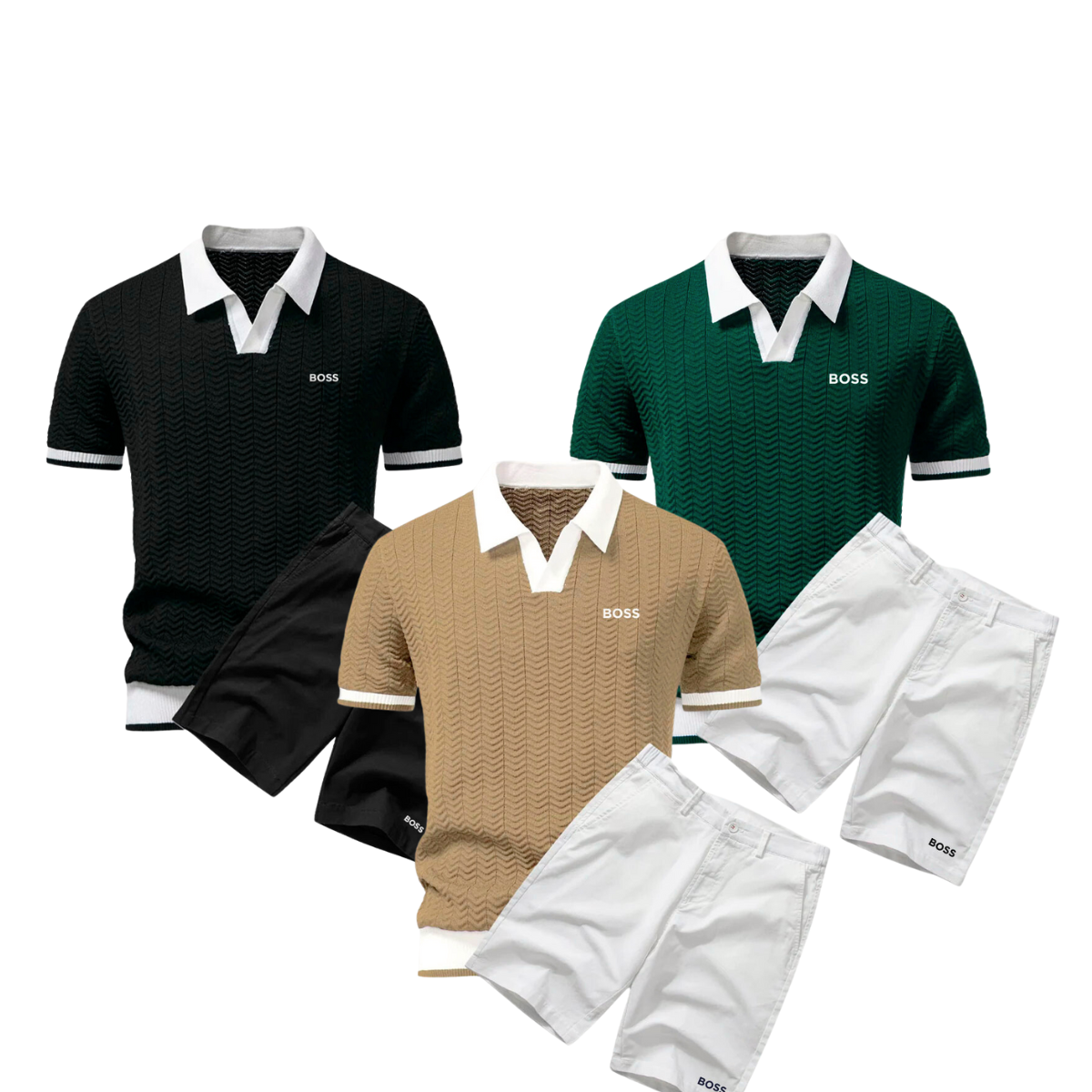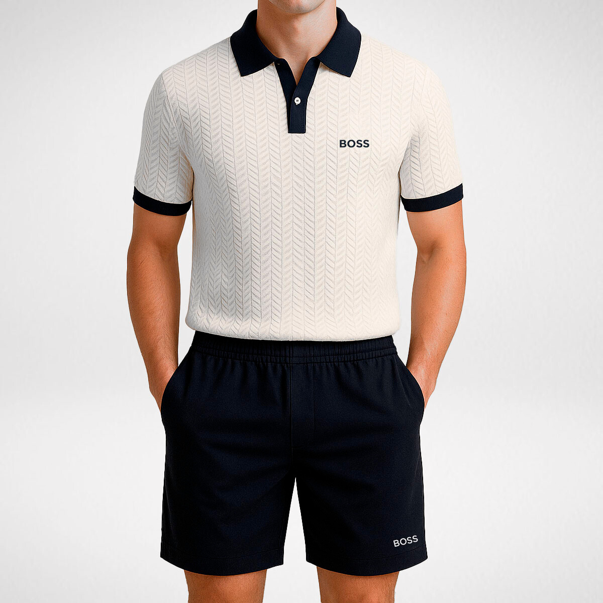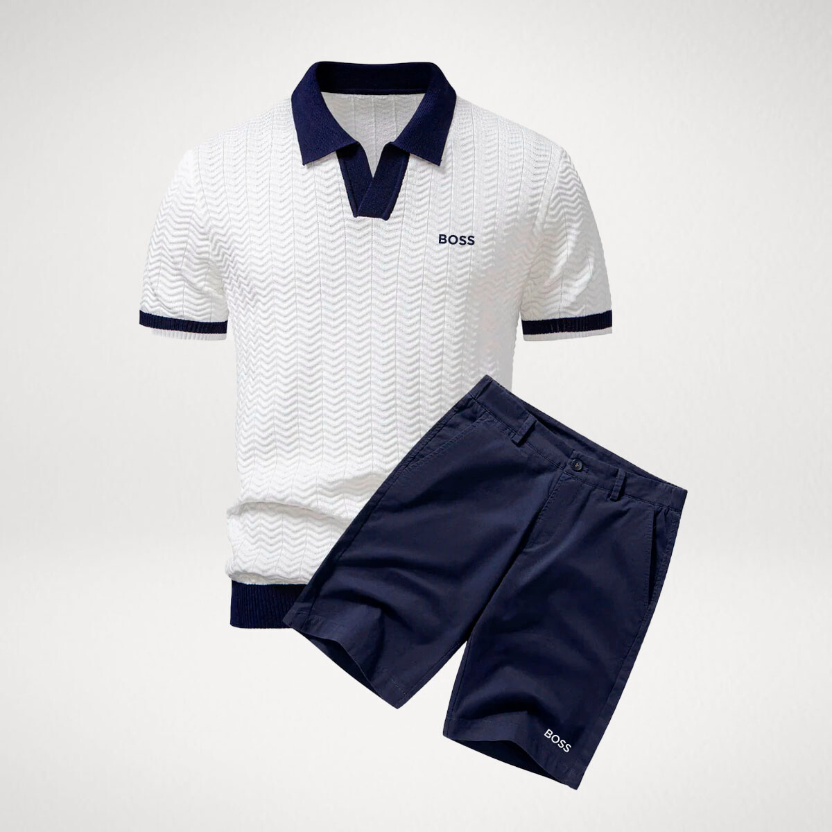 Verleihen Sie Ihrem Alltag neuen Stil mit dem Classic Contrast Set – wo elegantes Design auf lässigen Komfort trifft. Dieses sorgfältig zusammengestellte Set umfasst ein elegantes Poloshirt mit markanten Kontrastdetails und eine perfekt abgestimmte Shorts mit Kordelzug, die den Look mit dezentem Stil abrundet.