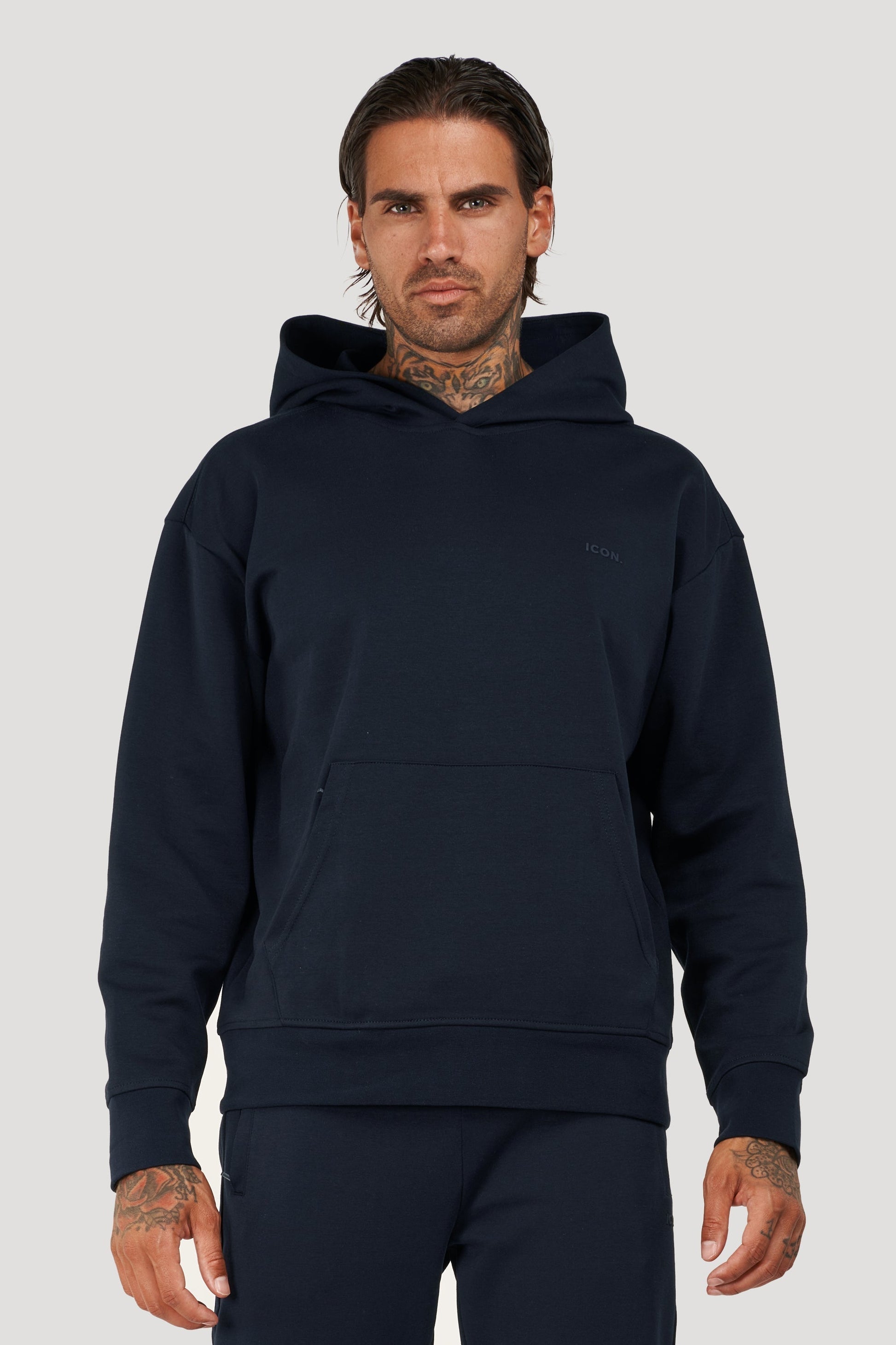 The Hoodie That Doesn't Hide You Show off your assets with this slim fit, soft, double face sweat knit hoodie. Go boldly with style and a 2-piece hood, kangaroo pocket, inset sleeves and 1x1 ribbing on the neck, cuffs and hem. Perfect to pair with the ICON Athletic Overshirt and the ICON Athletic Jogger.
